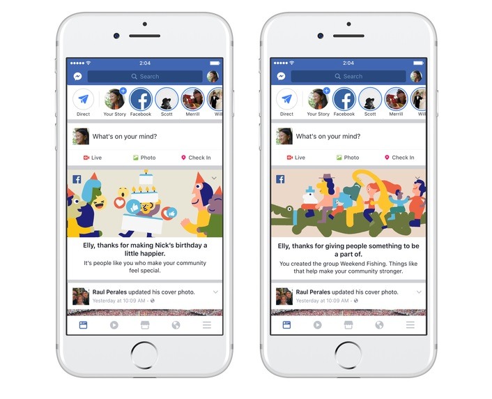 Oggi, secondo i numeri diffusi dall'azienda, ogni giorno oltre un miliardo di iscritti utilizza i Gruppi, quotidianamente vengono strette più di 750 milioni di nuove amicizie, 800 milioni di persone esprimono uno o più “like” su qualche contenuto e più di 175 milioni cliccano sull'icona del cuore per commentare a post altrui. A proposito della reaction “love”, d'ora in poi chi reagirà al post di un amico o di un parente con questa azione oppure augurerà buon compleanno o creerà un gruppo vedrà apparire un messaggio di ringraziamento di Facebook nel proprio News Feed.