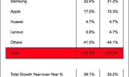 Per quanto riguarda il mercato dei tablet, Strategy Analytics fotografa il mercato stimando 57,6 milioni di pezzi venduti nel primo trimestre (più 19,2 per cento). Il 65,8 per cento delle unità vendute è basata su Android (e quindi una fetta non quantificata, ma senz’altro rilevante in mano a Samsung), il 28,4 per cento su iOS (ovvero Apple iPad) e il 5,8 per cento su Windows.